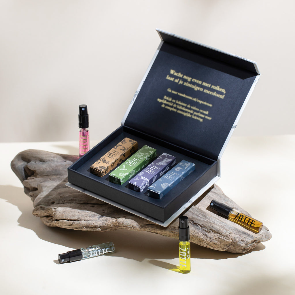 Als je onze parfums eerst even wilt proberen, voordat je voor de 50ML versie gaat (ondanks de heerlijke ingrediënten die hieronder beschreven staan), kies dan voor onze Sample Kit met een 3ML sample van elk van onze parfums. Verpakt in een prachtige geschenkverpakking én met onze Full Sensory Experience , dus leuk om te geven én te krijgen! Je ontvangt dan tevens per mail een voucher voor €20 korting op onze 50ML parfums en/of Geurstokjes.